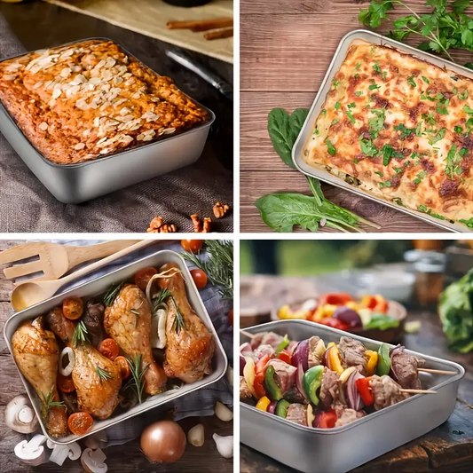 [6 + ️🎉GRATIS 3] Duża taca na żywność ze stali nierdzewnej 304 (25 * 20 * 5.5 cm)