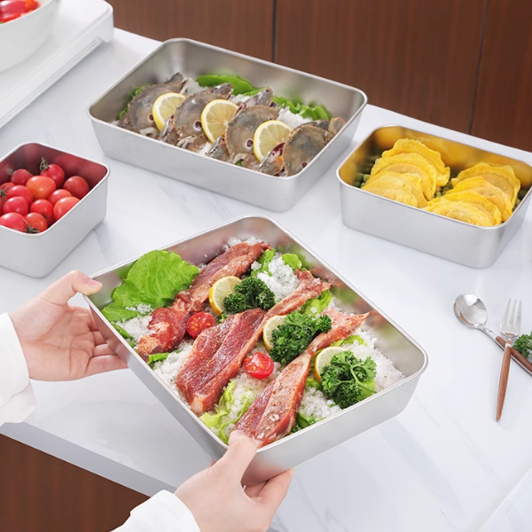 Nazwa produktu: Pojemnik na żywność ze stali nierdzewnej 304 (25 x 20 x 5.5 cm)