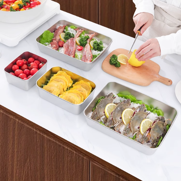 Pojemnik na żywność ze stali nierdzewnej 304 (25 x 20 x 5.5 cm)