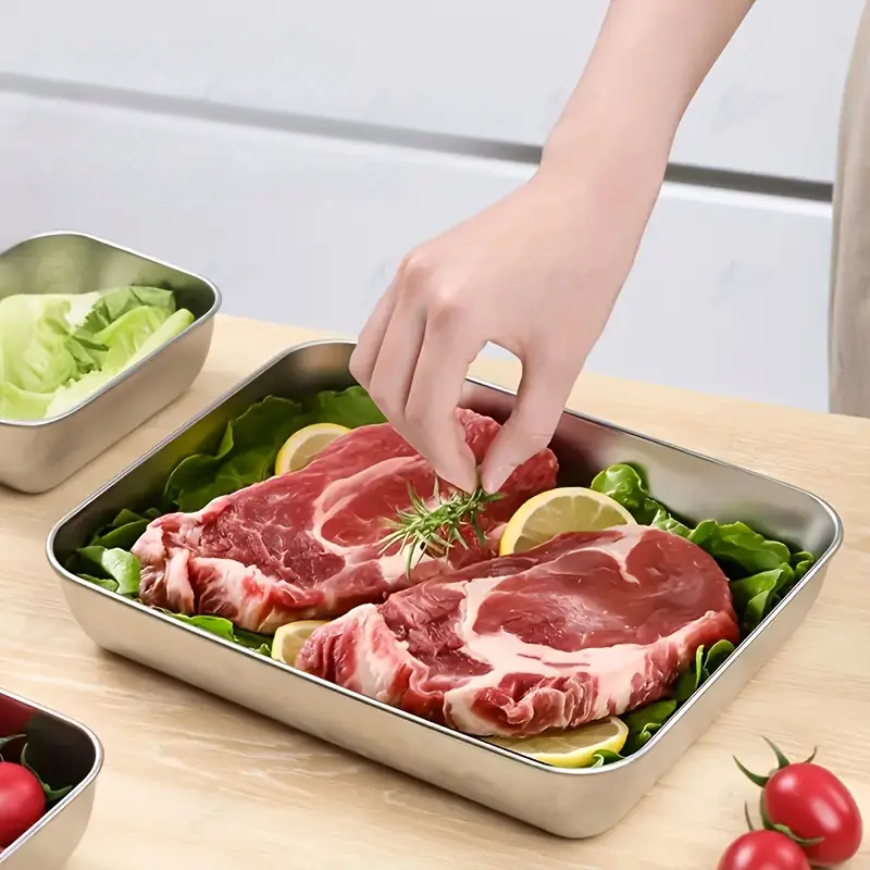 Taca ze stali nierdzewnej 304 – Bezpieczne i praktyczne rozwiązanie do przechowywania żywności (25x20x6 cm)