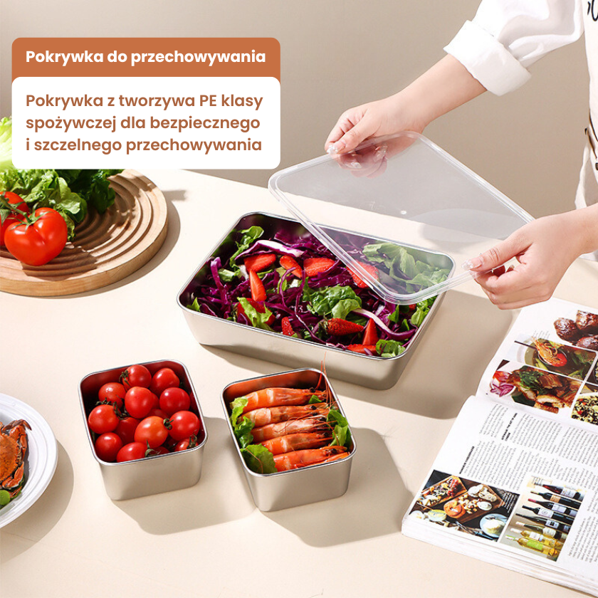 Pojemnik na żywność ze stali nierdzewnej 304 (25 x 19,5 x 5 cm) (TT)