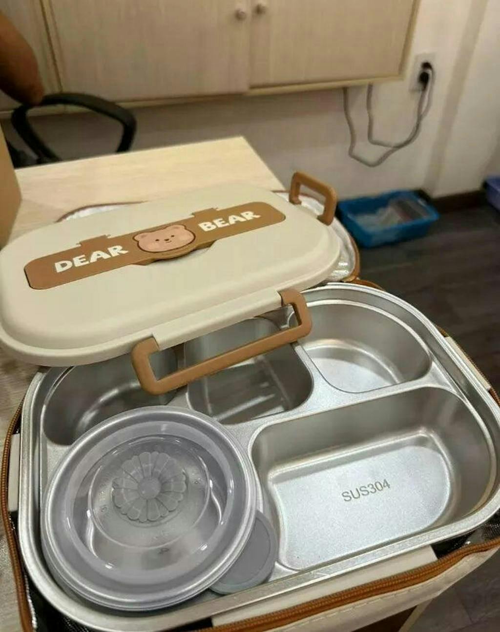 Pudełko na lunch ze stali nierdzewnej z praktycznymi przegrodami, kompletny zestaw obiadowy, dodatkowo: 1 okrąłe pudełko w prezencie