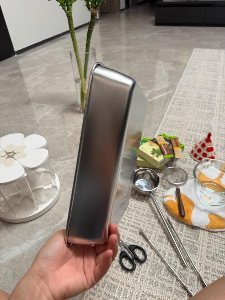 Taca stalowa 304: błyszcząca powierzchnia, łatwa do czyszczenia Hermetyczna pokrywka silikonowa: ogranicza powietrze i zapachy Możliwość układania w stos: czystsza i bardziej uporządkowana lodówka Szczegół silikonowej uszczelki hermetycznej