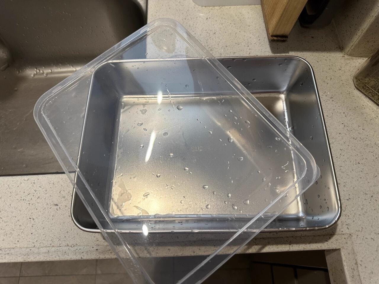 Taca ze stali nierdzewnej 304 z hermetyczną pokrywką (2,1 L – 25,7 × 19,7 × 5,7 cm) | RABAT 70%!