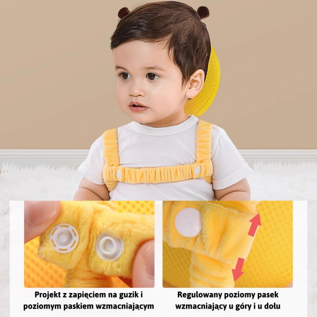 👉 Dzięki superlekkiemu i miękkiemu ochraniaczowi głowy dziecko jest bezpieczne, a mama może być spokojna, pozwalając mu odkrywać świat z pewnością siebie.